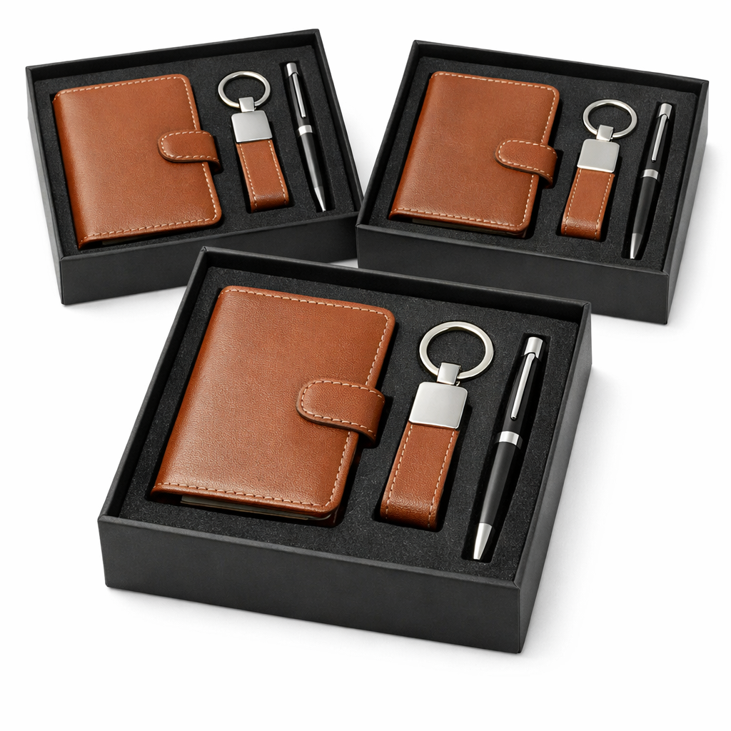POCKET ORGANIZER GIFT BOX -MINI (VEGAN LEATHER) PK OF 3 (POCKET NOTEBOOK ORG+KEY CHAIN +PEN)